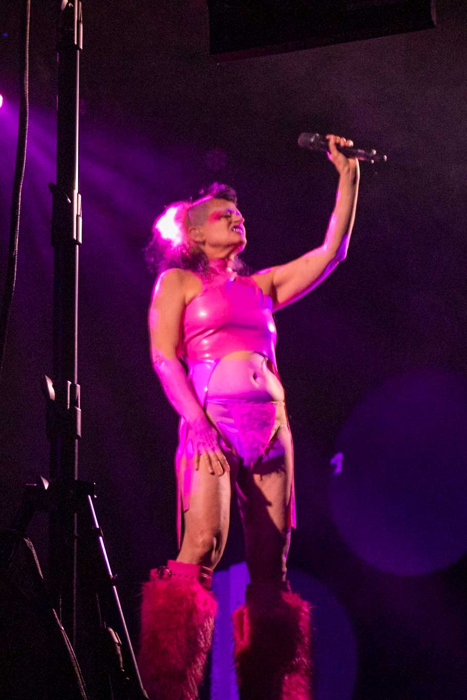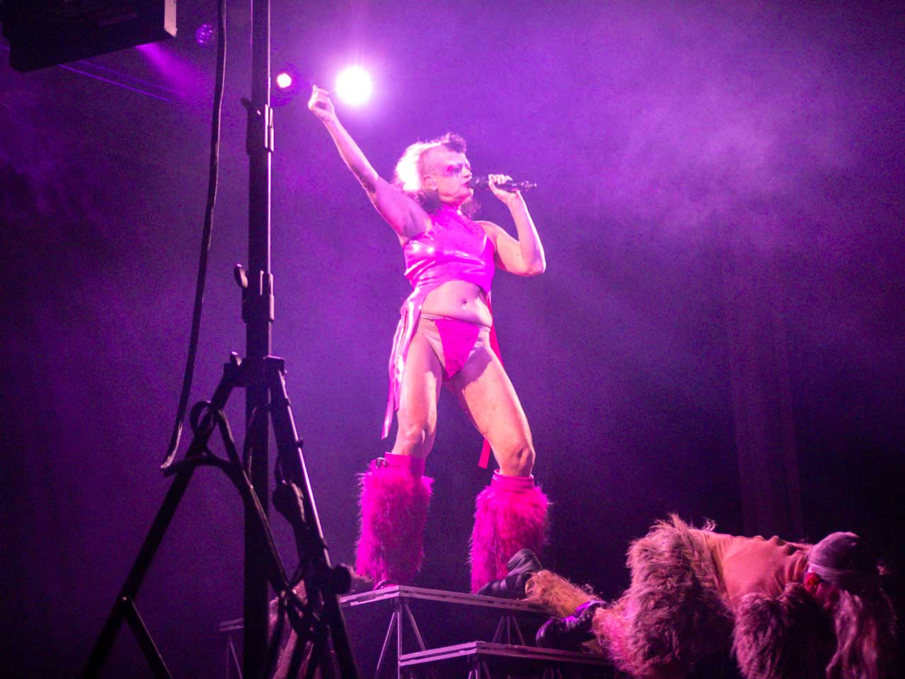 “What am I looking at?” Was my first thought when Peaches took to the Varsity stage. My second was, “How the hell am I going to describe this?” Thankfully the photos can do most of the work, but I ask you, dear reader, what even is this? I thought it might be dangling wangs at first glance, but that’s definitely not it. This show’s celebrations were strictly vaginal.