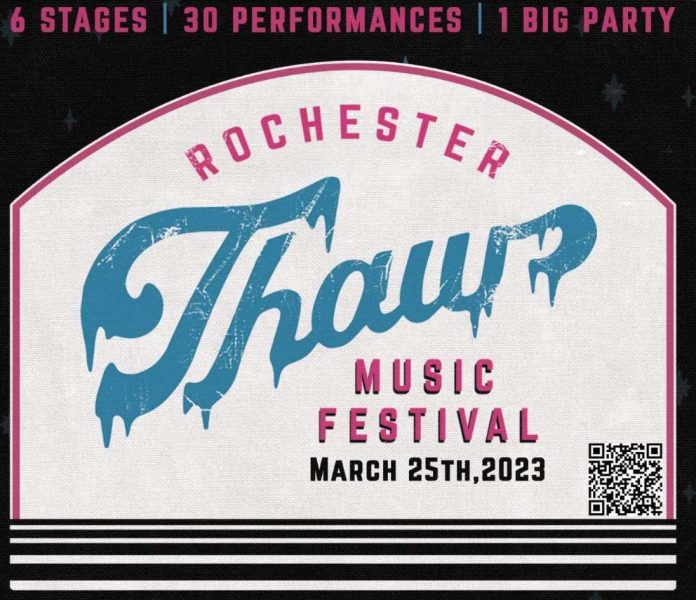 The Rochester Thaw is a music festival taking over downtown with 30 performances in 6 different venues: Chateau Theater, Bleu Duck Kitchen, Cafe Steam – Broadway, Art Heads Emporium, LC’s Venue, and Treedome.